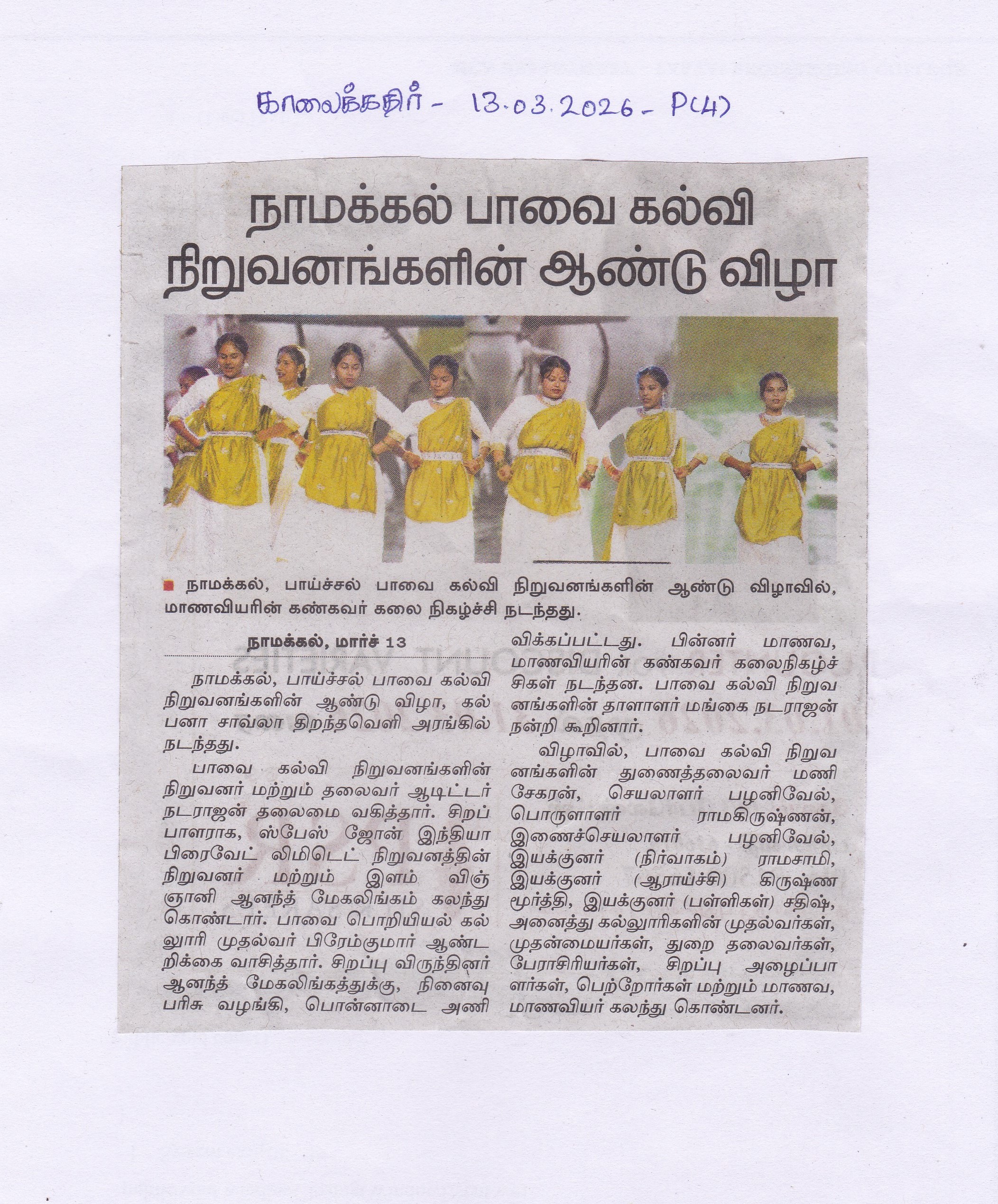 The Talent Day of Paavai Polytechnic college was celebrated  with great enthusiasm and excitement on... More >>