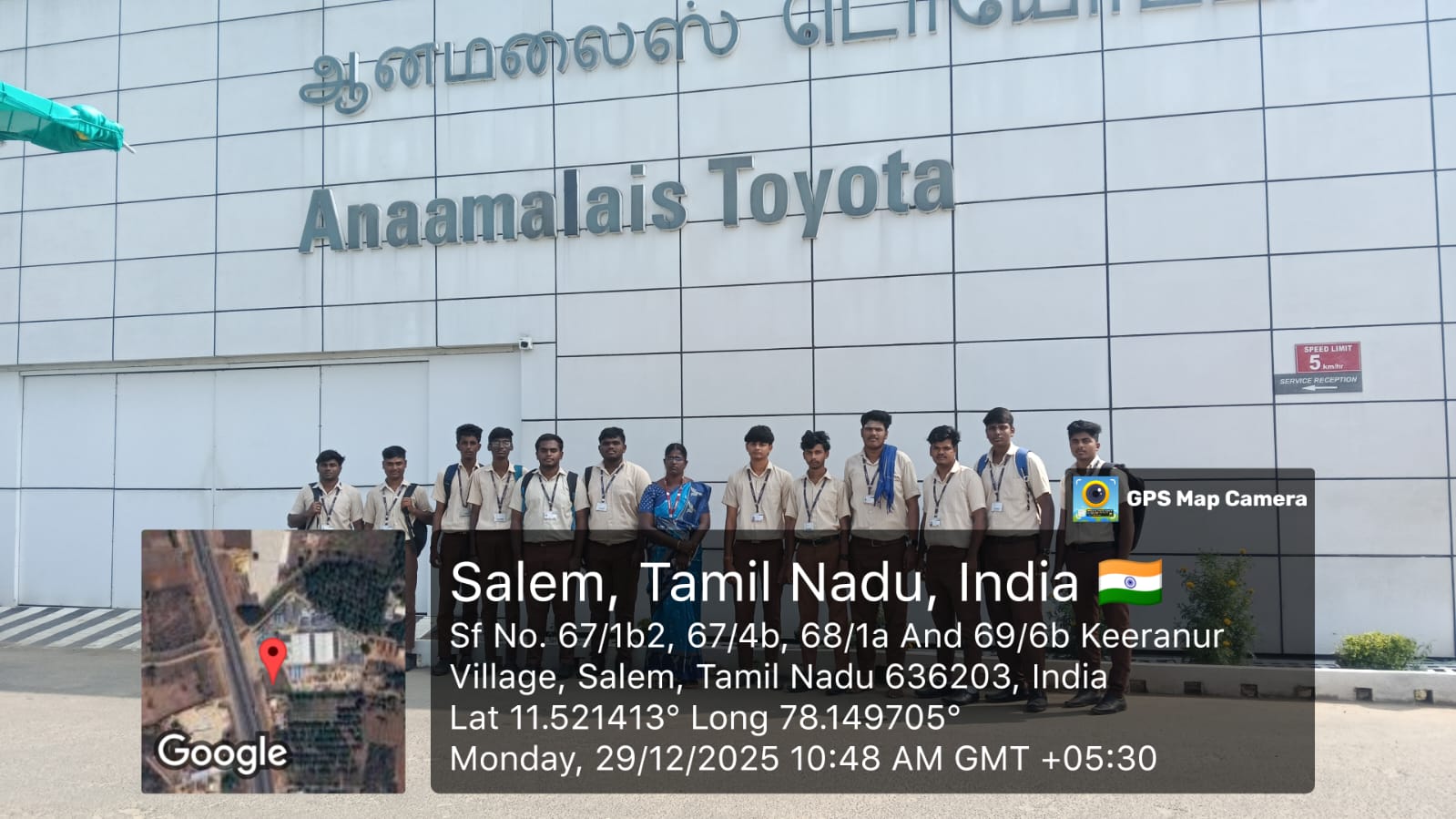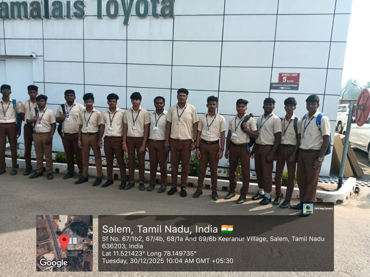 On 29th December 2025, third-year students of Paavai Polytechnic College from the department of Electrical and Electronics Engineering (EEE) had their internship at Aanaimalai Toyota, Mallur, Salem. The internship was designed to provide practical exposure to electrical systems in automotive technology, vehicle electronics, and modern workshop practices.