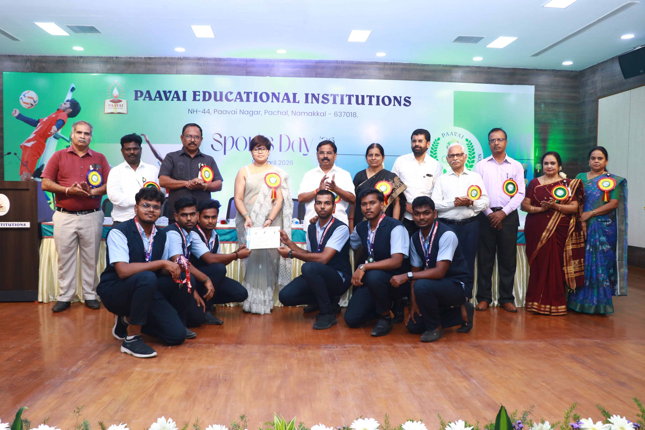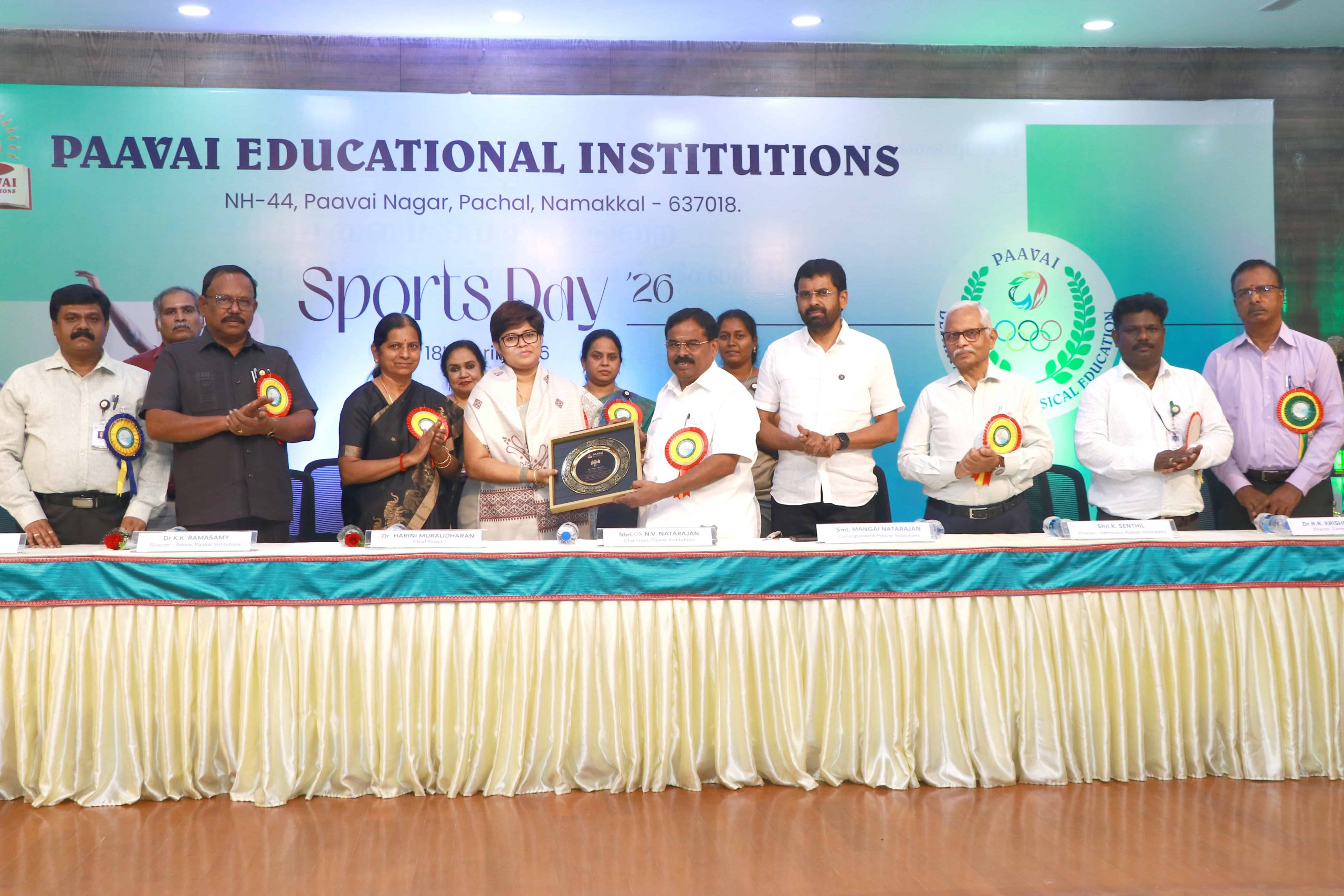 The Sports Day celebration was held at Paavai Educational Institutions. The Founder and Chairman of Paavai Educational Institutions, Shri CA N. V. Natarajan, presided over the function and delivered the presidential address.